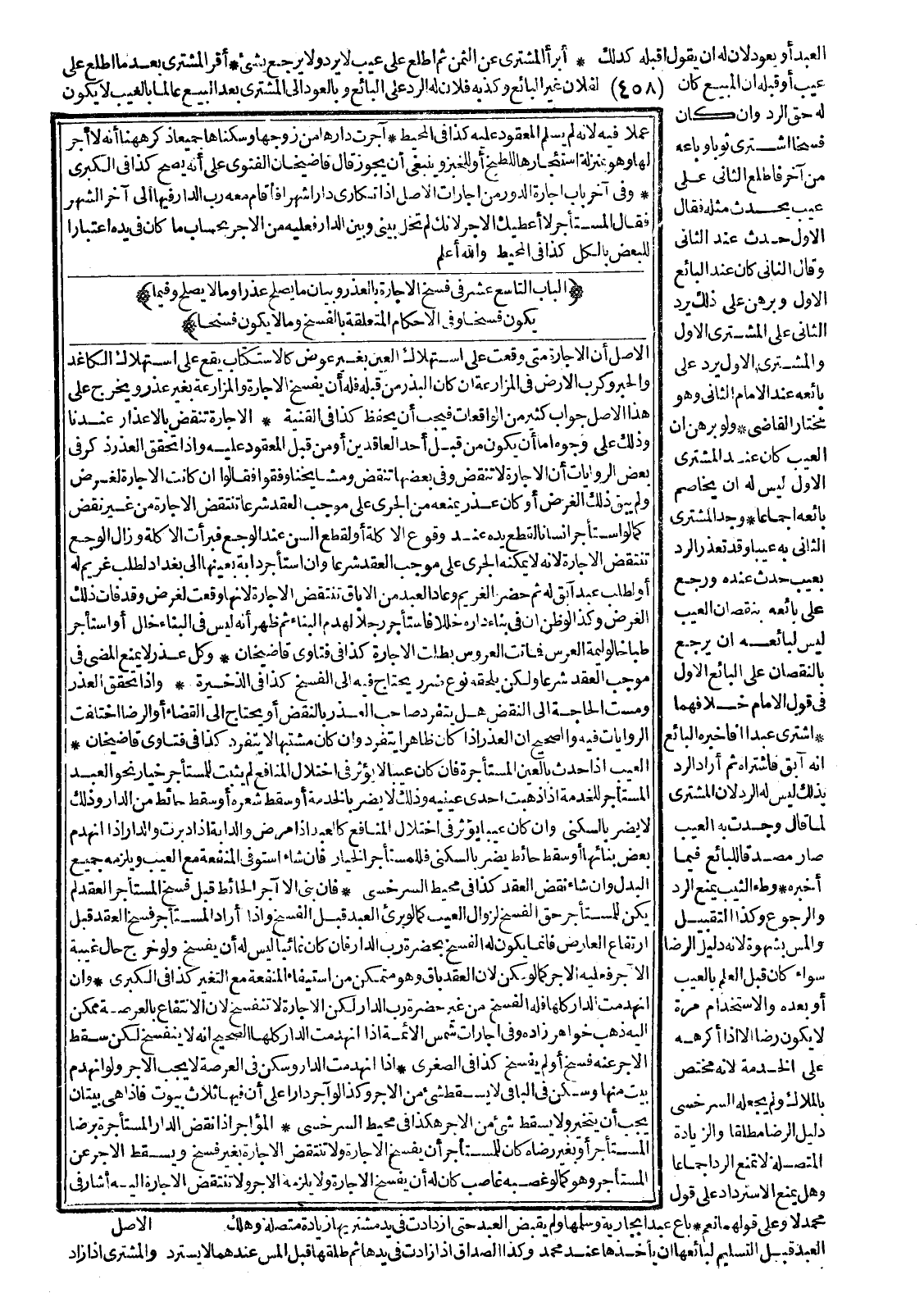 [الْبَابُ التَّاسِع عَشَرَ فِي فَسْخِ الْإِجَارَةِ بِالْعُذْرِ]