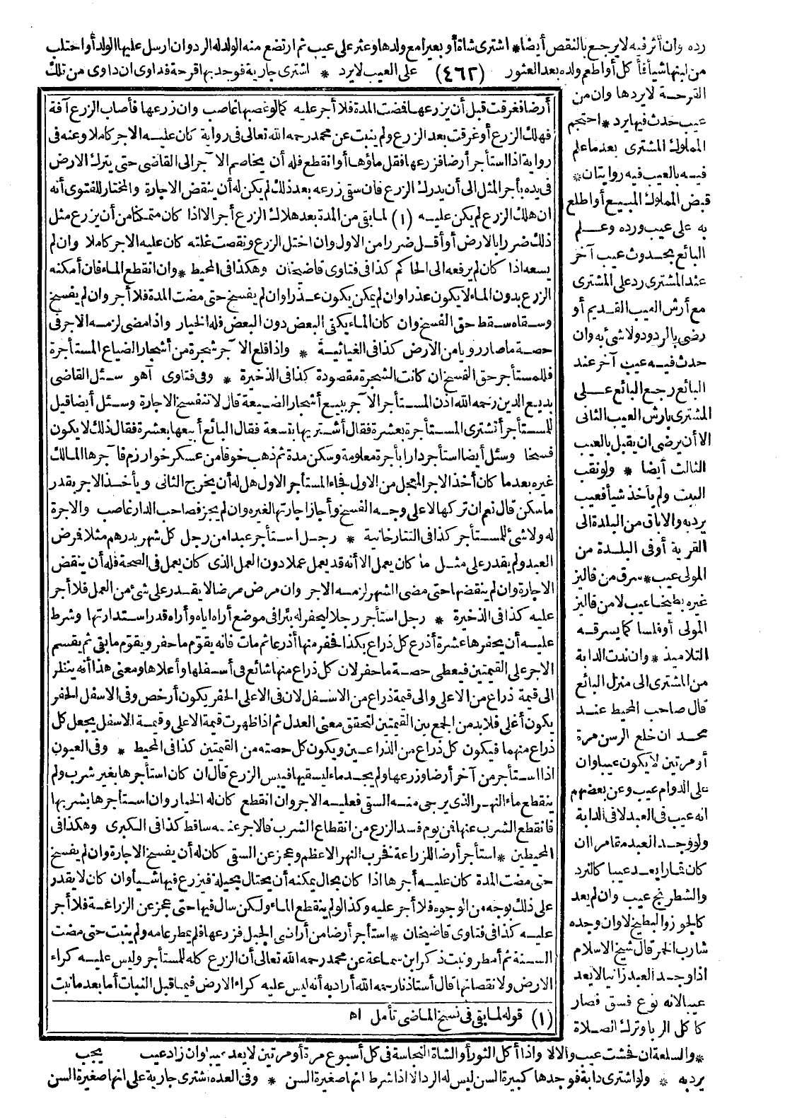 وَفِي الْعُيُونِ إذَا اسْتَأْجَرَ مِنْ آخَرَ أَرْضًا وَزَرَعَهَا وَلَمْ يَجِدْ مَاءً لِيَسْقِيَهَا فَيَبِسَ الزَّرْعُ قَالَ إنْ كَانَ اسْتَأْجَرَهَا بِغَيْرِ شُرْبٍ وَلَمْ يَنْقَطِعْ مَاءُ النَّهْرِ الَّذِي يُرْجَى مِنْهُ السَّقْيُ فَعَلَيْهِ الْأَجْرُ، وَإِنْ انْقَطَعَ كَانَ لَهُ الْخِيَارُ، وَإِنْ اسْتَأْجَرَهَا بِشُرْبِهَا فَانْقَطَعَ الشُّرْبُ عَنْهَا فَمِنْ يَوْمِ فَسَدَ الزَّرْعُ مِنْ انْقِطَاعِ الشُّرْبِ فَالْأَجْرُ عَنْهُ سَاقِطٌ كَذَا فِي الْكُبْرَى وَهَكَذَا فِي الْمُحِيطَيْنِ.