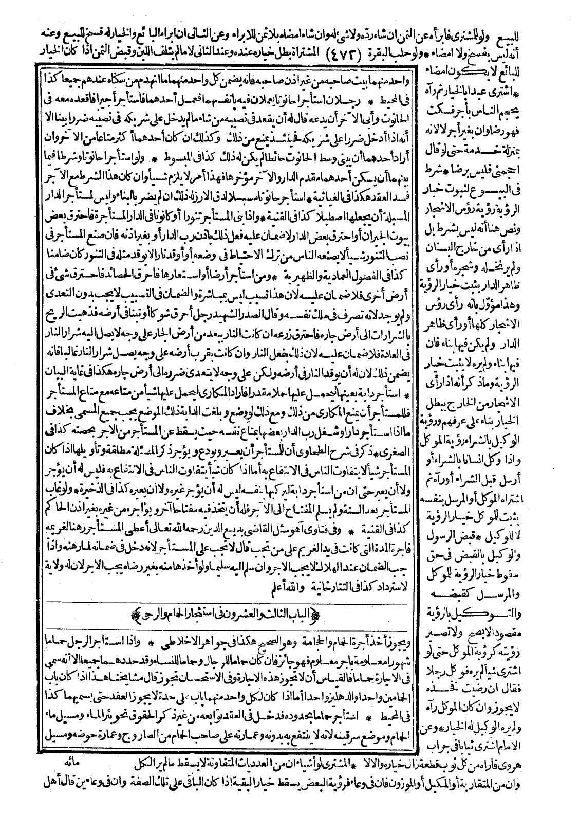 [الْبَابُ الثَّالِثُ وَالْعِشْرُونَ فِي اسْتِئْجَارِ الْحَمَّامِ وَالرَّحَى]