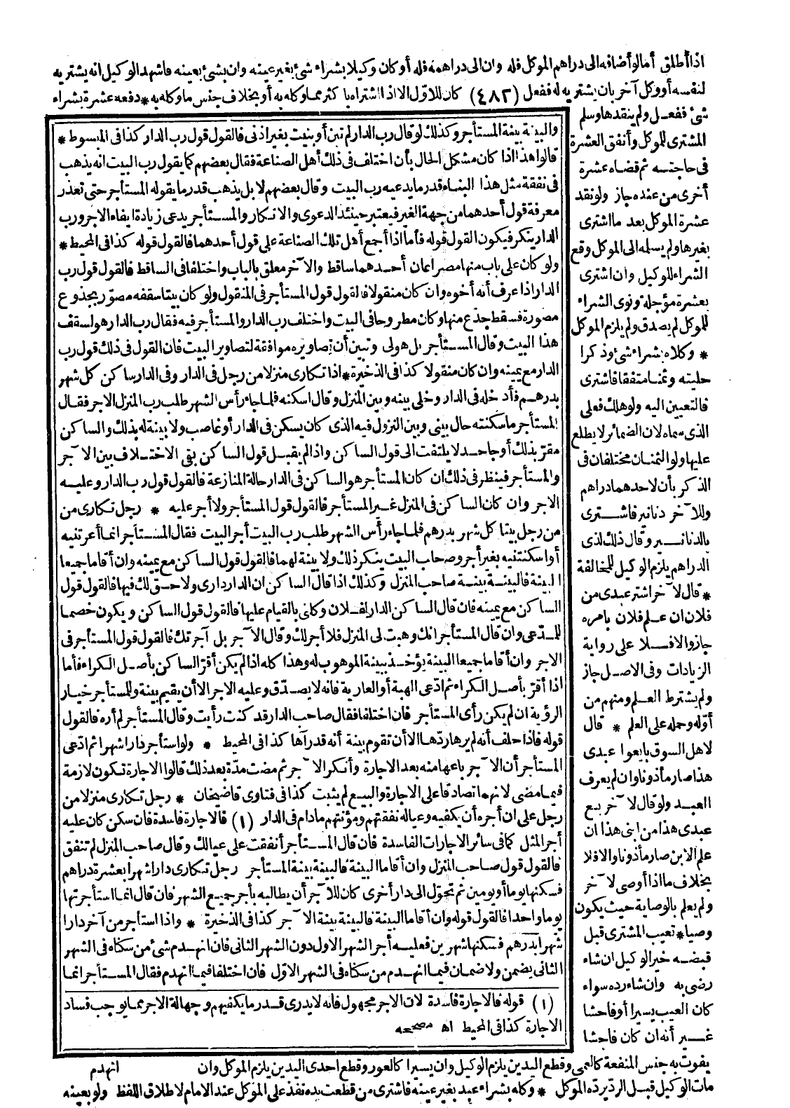 رَجُلٌ تَكَارَى مَنْزِلًا مِنْ رَجُلٍ عَلَى أَنَّ أَجْرَهُ أَنْ يَكْفِيَهُ وَعِيَالَهُ نَفَقَتَهُمْ وَمَئُونَتَهُمْ مَا دَامَ فِي الدَّارِ فَالْإِجَارَةُ فَاسِدَةٌ فَإِنْ سَكَنَ كَانَ عَلَيْهِ أَجْرُ الْمِثْلِ كَمَا فِي سَائِرِ الْإِجَارَاتِ الْفَاسِدَةِ فَإِنْ قَالَ الْمُسْتَأْجِرُ أَنْفَقْت عَلَى عِيَالِك وَقَالَ صَاحِبُ الْمَنْزِلِ لَمْ تُنْفِقْ فَالْقَوْلُ قَوْلُ صَاحِبِ الْمَنْزِلِ، وَإِنْ أَقَامَا الْبَيِّنَةَ فَالْبَيِّنَةُ بَيِّنَةُ الْمُسْتَأْجِرِ.