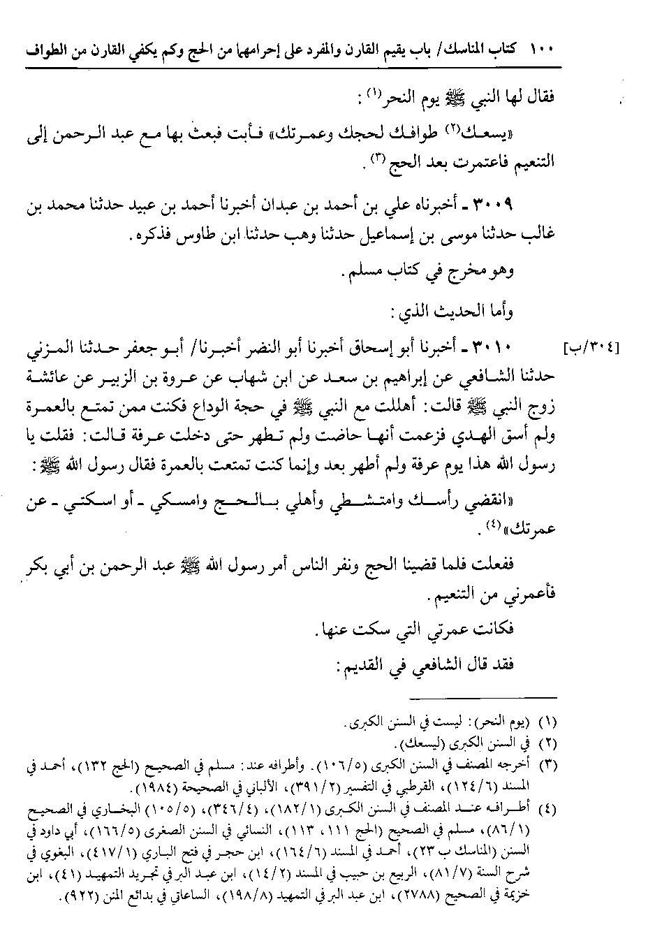 وأما الحديث الذي 3010 - أخبرنا أبو إسحاق أخبرنا أبو النضر أخبرنا أبو جعفر حدثنا المزني حدثنا الشافعي عن إبراهيم بن سعد عن ابن شهاب عن عروة بن الزبير عن عائشة زوج النبي صلى الله عليه وسلم قالت : أهللت مع النبي صلى الله عليه وسلم في حجة الوداع فكنت ممن تمتع بالعمرة ولم أسق الهدي فزعمت أنها حاضت ولم تطهر حتى دخلت عرفة قالت : فقلت يا رسول الله هذا يوم عرفة ولم أطهر بعد وإنما كنت تمتعت بالعمرة فقال رسول الله صلى الله عليه وسلم انقضي رأسك وامتشطي وأهلي بالحج وامسكي - أو اسكتي - عن عمرتك.