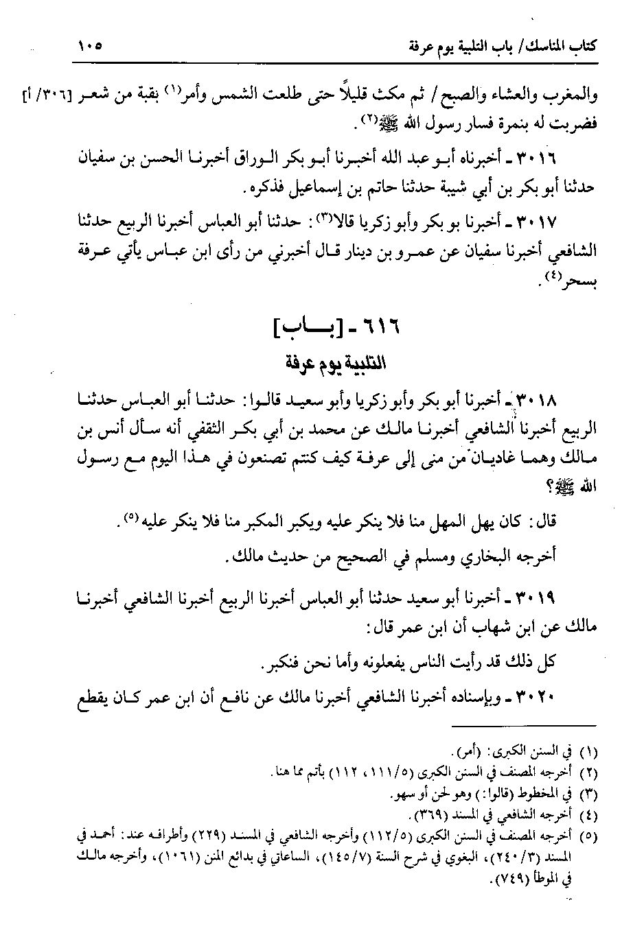 3017 - أخبرناه أبو بكر وأبو زكريا قالا : حدثنا أبو العباس أخبرنا الربيع حدثنا الشافعي أخبرنا سفيان عن عمرو بن دينار قال أخبرني من رأى ابن عباس يأتي عرفة بسحر.