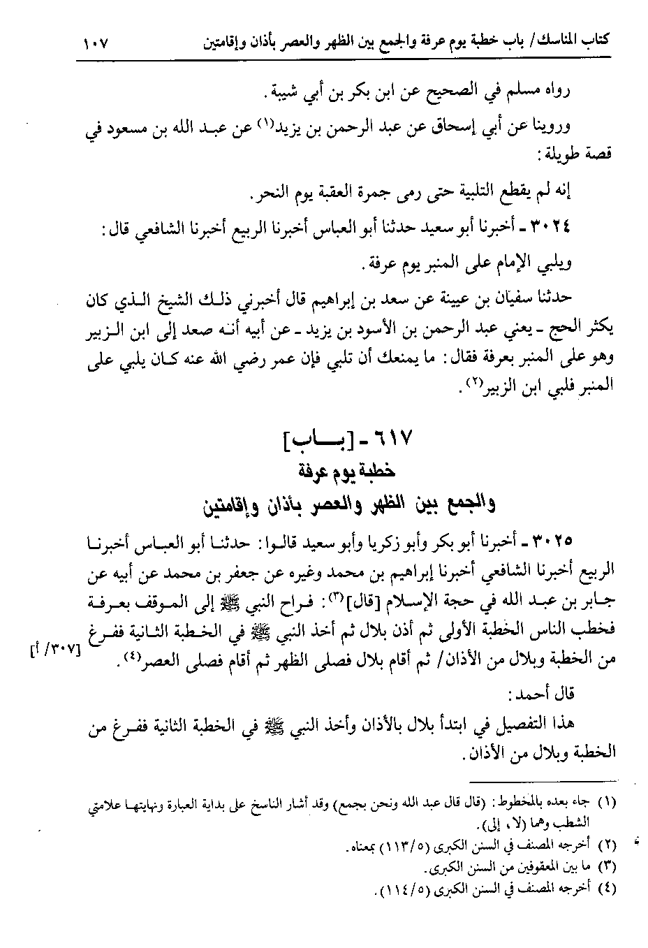 3024 - أخبرنا أبو سعيد حدثنا أبو العباس أخبرنا الربيع أخبرنا الشافعي قال ويلبي الإمام على المنبر يوم عرفة.