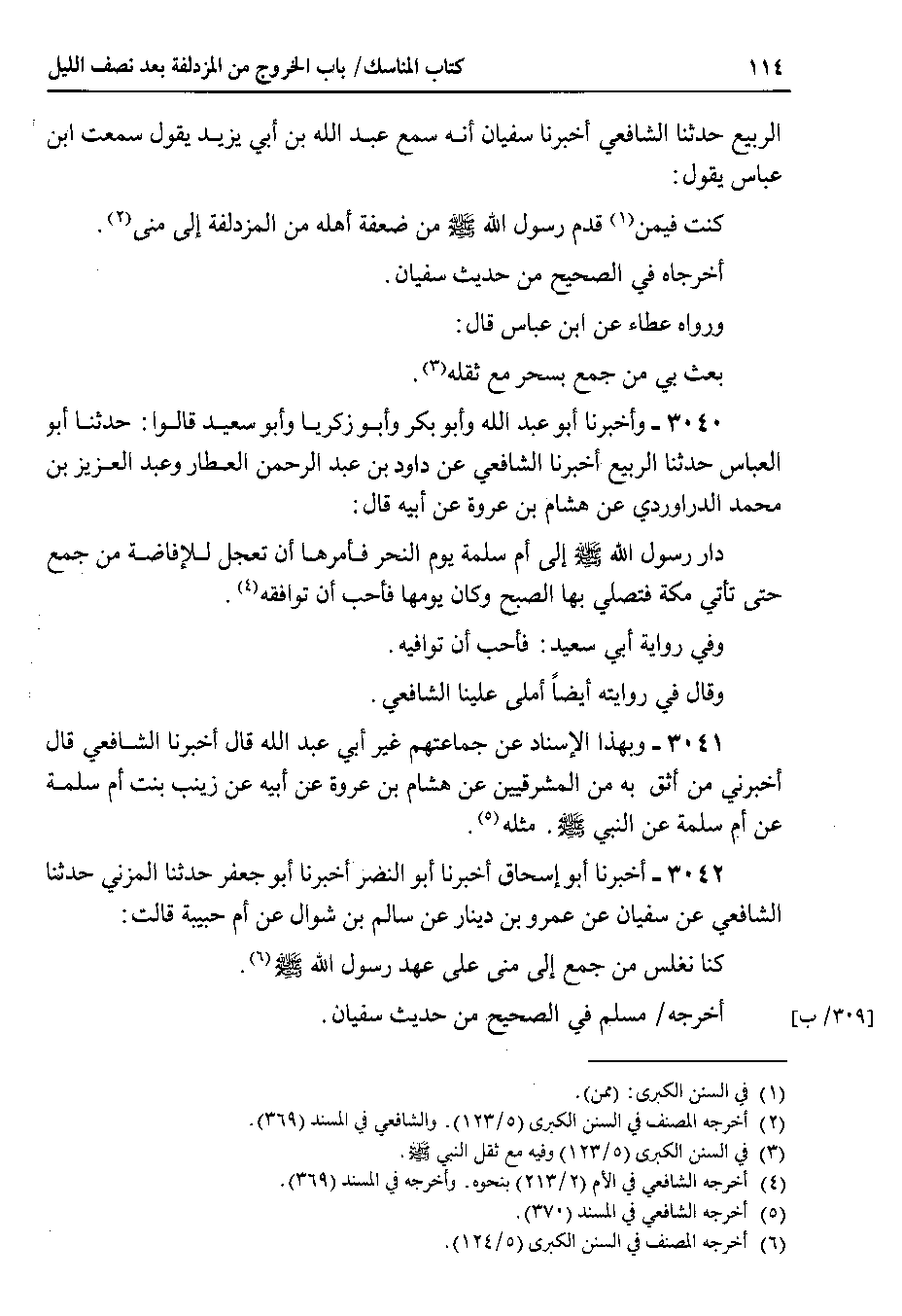 3042 - أخبرنا أبو إسحاق أخبرنا أبو النضر أخبرنا أبو جعفر حدثنا المزني حدثنا الشافعي عن سفيان عن عمرو بن دينار عن سالم بن شوال عن أم حبيبة قالت كنا نغلس من جمع إلى منى على عهد رسول الله صلى الله عليه وسلم.