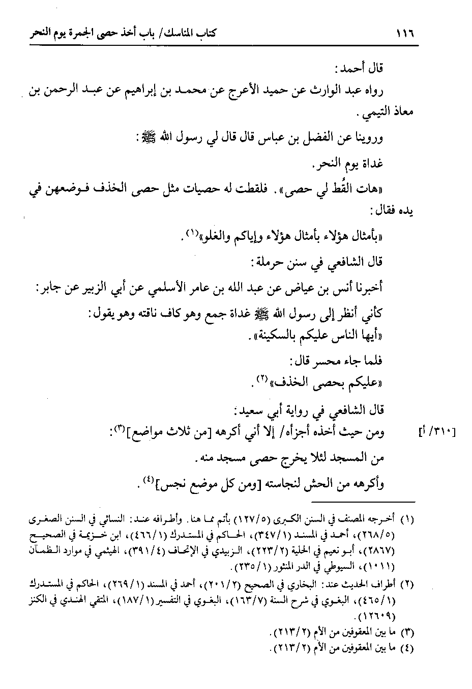 هات القط لي حصى . فلقطت له حصيات مثل حصى الخذف فوضعهن في يده فقال بأمثال هؤلاء بأمثال هؤلاء وإياكم والغلو.