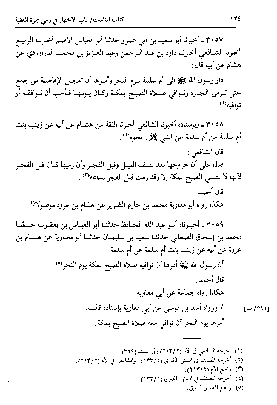 3057 - أخبرنا أبو سعيد بن أبي عمرو حدثنا أبو العباس الأصم أخبرنا الربيع أخبرنا الشافعي أخبرنا داود بن عبد الرحمن وعبد العزيز بن محمد الدراوردي عن هشام عن أبيه قال : دار رسول الله صلى الله عليه وسلم إلى أم سلمة يوم النحر وأمرها أن تعجل الإفاضة من جمع حتى ترمي الجمرة وتوافي صلاة الصبح بمكة وكان يومها فأحب أن توافقه أو توافيه.