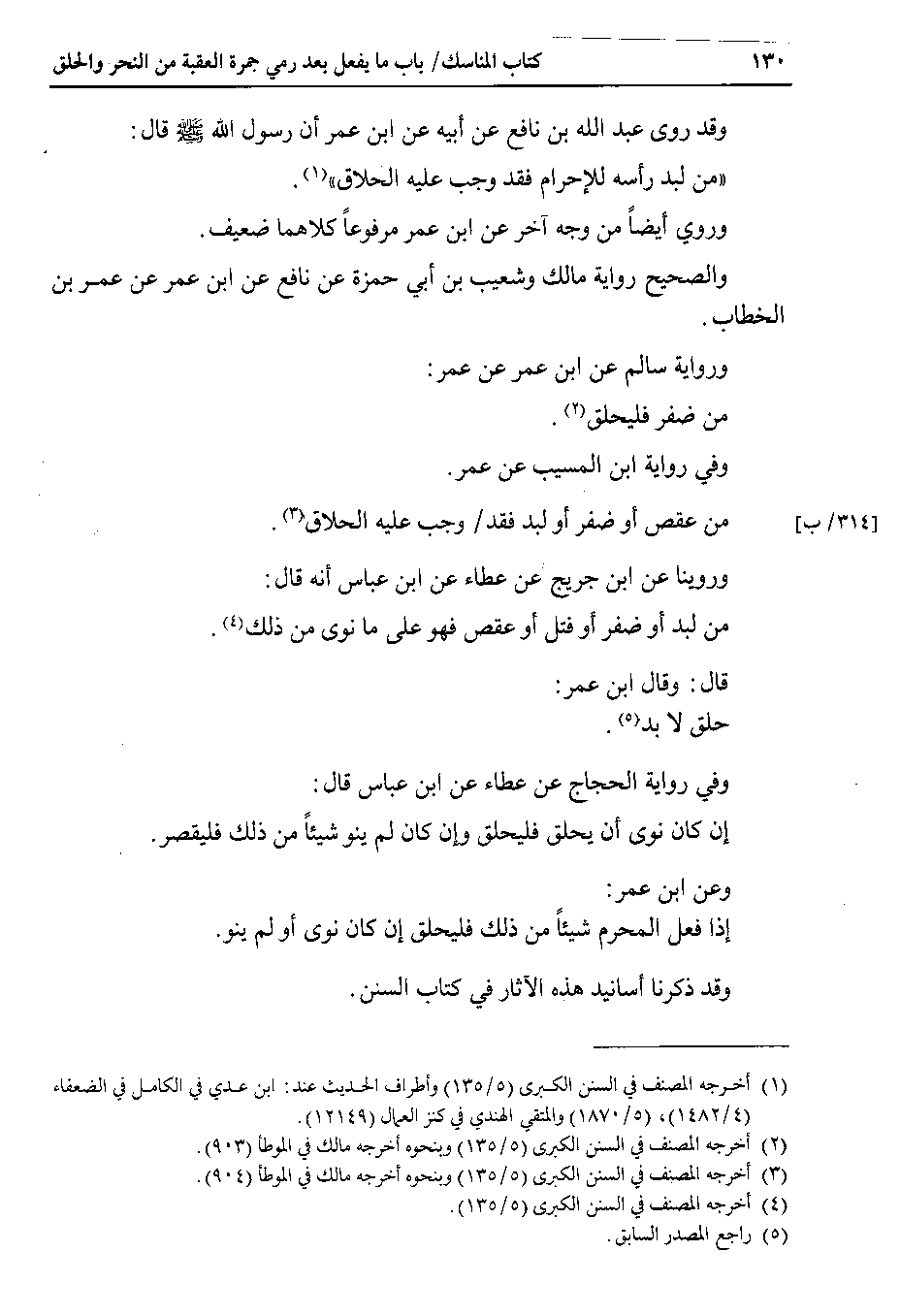 قال : وقال ابن عمر : حلق لا بد.