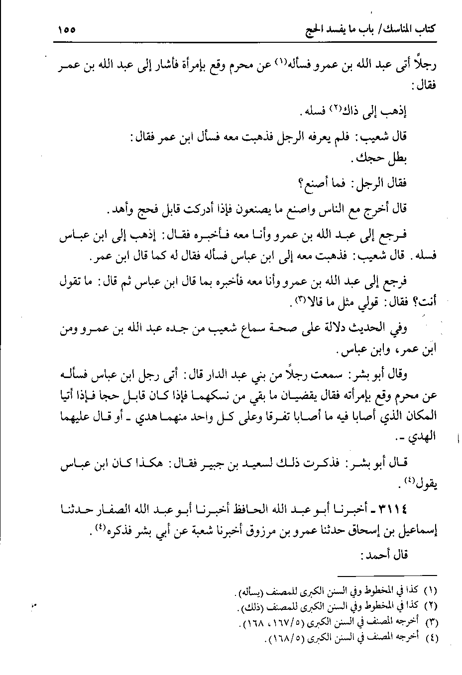 قال شعيب : فلم يعرفه الرجل فذهبت معه فسأل ابن عمر فقال بطل حجك.
