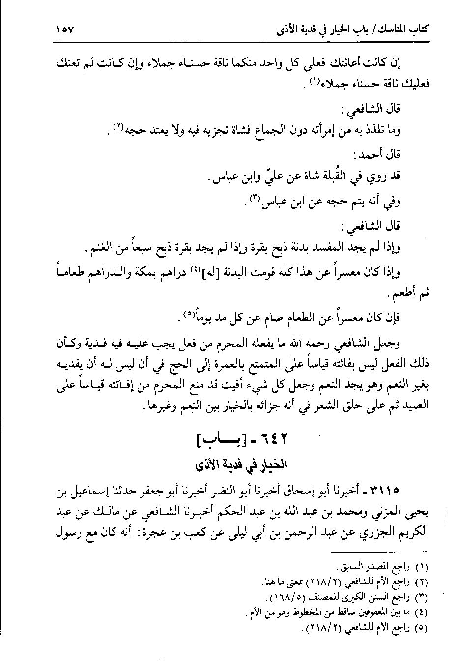 3115 - أخبرنا أبو إسحاق أخبرنا أبو النضر أخبرنا أبو جعفر حدثنا إسماعيل بن يحيى المزني ومحمد بن عبد الله بن عبد الحكم أخبرنا الشافعي عن مالك عن عبد الكريم الجزري عن عبد الرحمن بن أبي ليلى عن كعب بن عجرة : أنه كان مع رسول