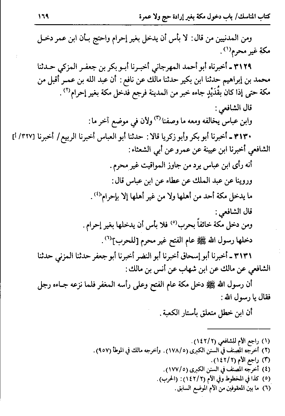 3129 - أخبرناه أبو أحمد المهرجاني أخبرنا أبو بكر بن جعفر المزكي حدثنا محمد بن إبراهيم حدثنا ابن بكير حدثنا مالك عن نافع : أن عبد الله بن عمر أقبل من مكة حتى إذا كان بقديدٍ جاءه خبر من المدينة فرجع فدخل مكة بغير إحرام.