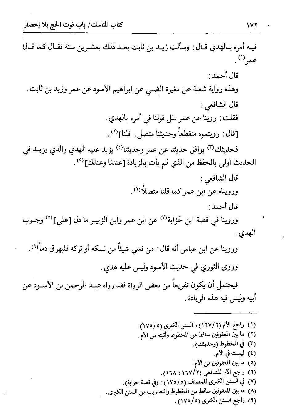 قال الشافعي فقلت : روينا عن عمر مثل قولنا في أمره بالهدي.