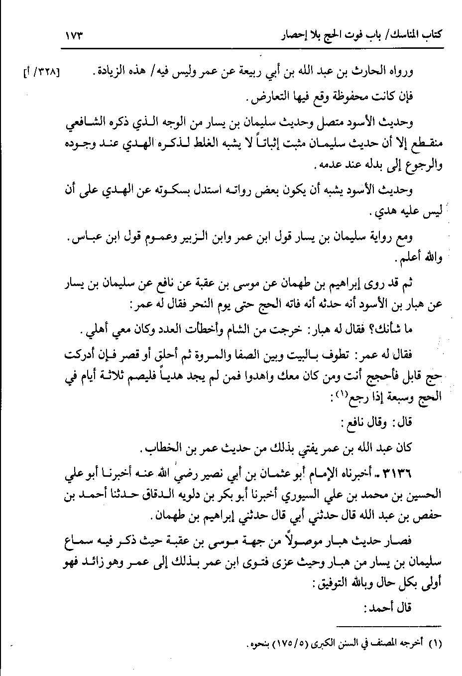 فصار حديث هبار موصولاً من جهة موسى بن عقبة حيث ذكر فيه سماع سليمان بن يسار من هبار وحيث عزى فتوى ابن عمر بذلك إلى عمر وهو زائد فهو أولى بكل حال وبالله التوفيق قال أحمد