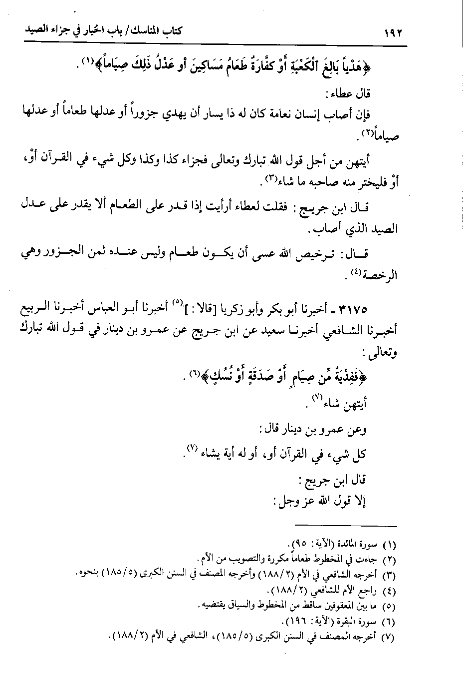 3175 - أخبرنا أبو بكر وأبو زكريا قالا : أخبرنا أبو العباس أخبرنا الربيع أخبرنا الشافعي أخبرنا سعيد عن ابن جريج عن عمرو بن دينار في قول الله تبارك وتعالى {ففدية من صيام أو صدقة أو نسك} أيتهن شاء.