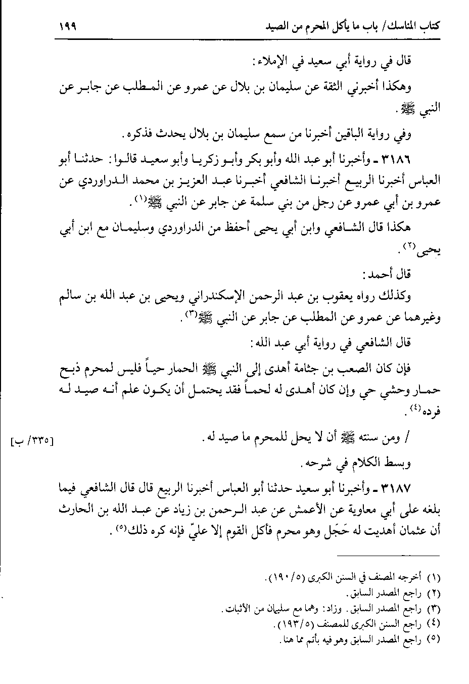 3187 - وأخبرنا أبو سعيد حدثنا أبو العباس أخبرنا الربيع قال قال الشافعي فيما بلغه على أبي معاوية عن الأعمش عن عبد الرحمن بن زياد عن عبد الله بن الحارث أن عثمان أهديت له حجل وهو محرم فأكل القوم إلا علي فإنه كره ذلك.