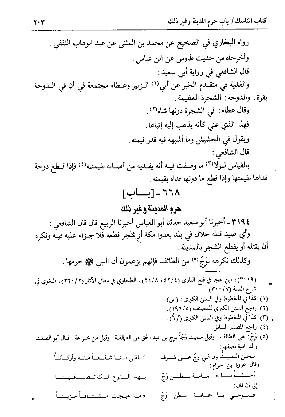 3194 - أخبرنا أبو سعيد حدثنا أبو العباس أخبرنا الربيع قال قال الشافعي وأي صيد قتله حلال في بلد يعدوا مكة أو شجر قطعه فلا جزاء عليه فيه ونكره أن يقتله أو يقطع الشجر بالمدينة.