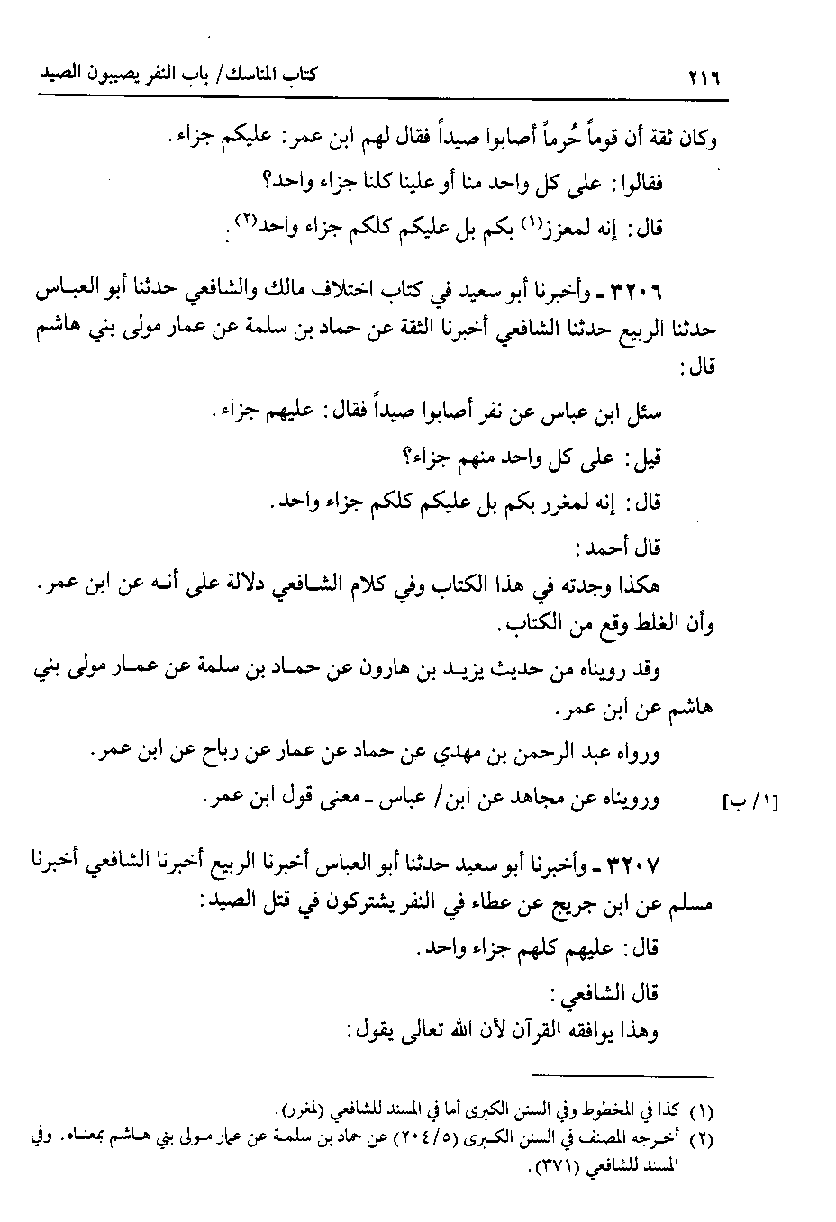 3206 - وأخبرنا أبو سعيد في كتاب اختلاف مالك والشافعي حدثنا أبو العباس حدثنا الربيع حدثنا الشافعي أخبرنا الثقة عن حماد بن سلمة عن عمار مولى بني هاشم قال سئل ابن عباس عن نفر أصابوا صيداً فقال : عليهم جزاء.
