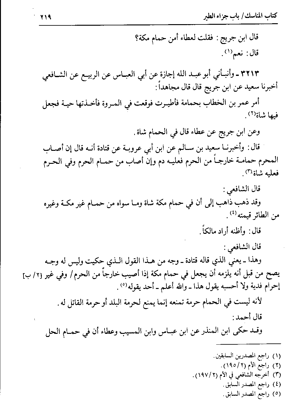 3213 - وأنبأني أبو عبد الله إجازة عن أبي العباس عن الربيع عن الشافعي أخبرنا سعيد عن ابن جريج قال قال مجاهداً أمر عمر بن الخطاب بحمامة فأطيرت فوقعت في المروة فأخذتها حية فجعل فيها شاة.