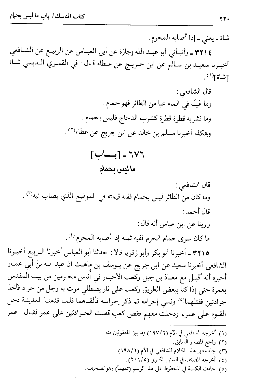 3214 - وأنبأني أبو عبد الله إجازة عن أبي العباس عن الربيع عن الشافعي أخبرنا سعيد بن سالم عن ابن جريج عن عطاء قال : في القمري الدبسي شاة شاة.