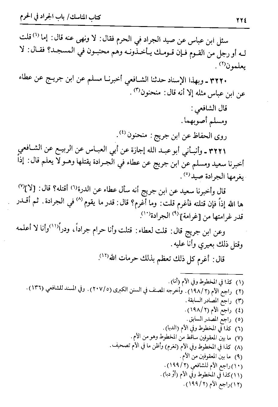 3221 - وأنبأني أبو عبد الله إجازة عن أبي العباس عن الربيع عن الشافعي أخبرنا سعيد ومسلم عن ابن جريج عن عطاء في الجرادة يقتلها وهو لا يعلم قال : إذاً يغرمها الجرادة صيد.