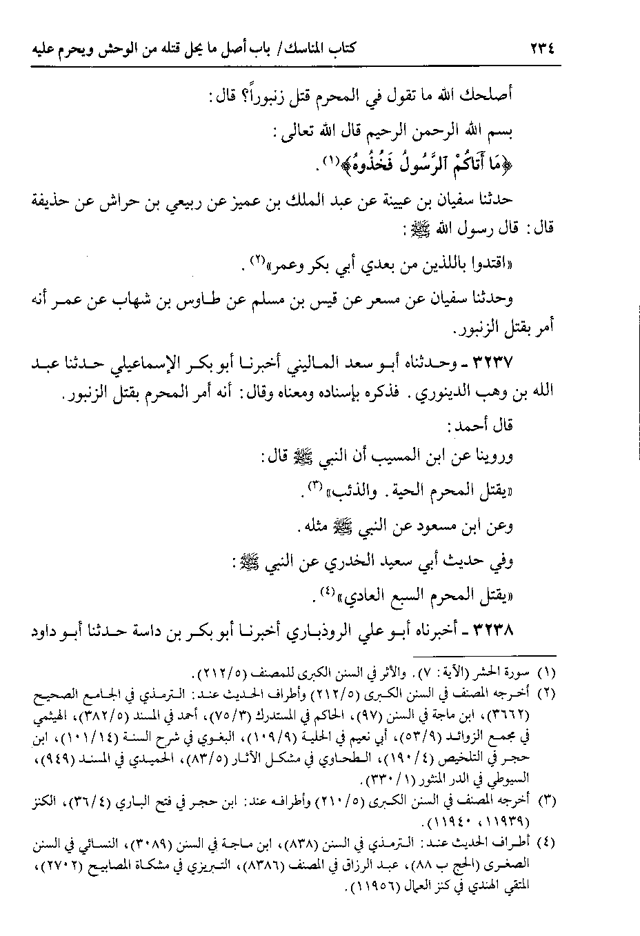3237 - وحدثناه أبو سعد الماليني أخبرنا أبو بكر الإسماعيلي حدثنا عبد الله بن وهب الدينوري . فذكره بإسناده ومعناه وقال : أنه أمر المحرم بقتل الزنبور.