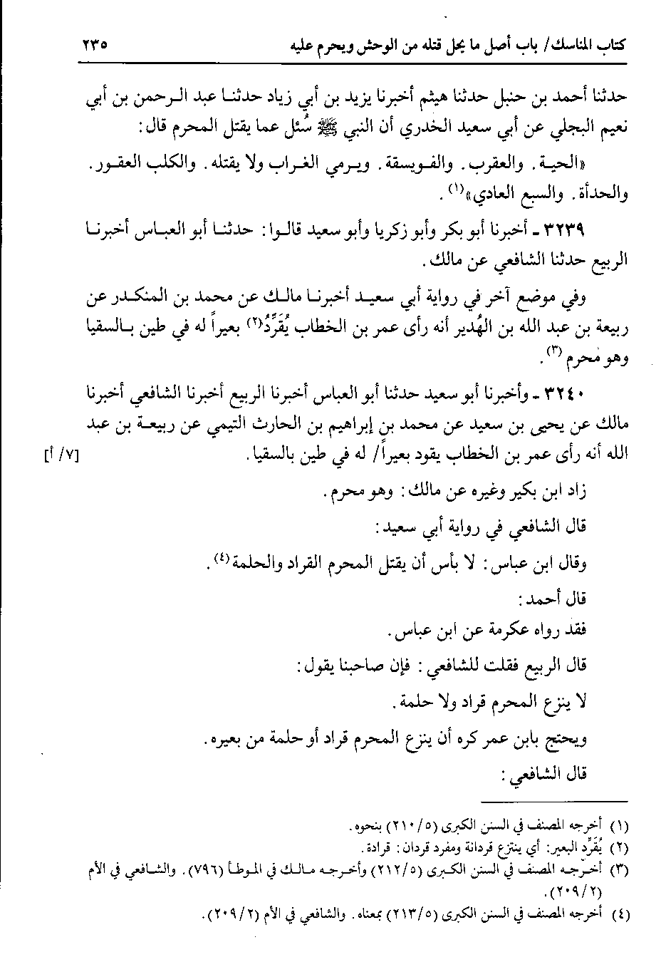 3240 - وأخبرنا أبو سعيد حدثنا أبو العباس أخبرنا الربيع أخبرنا الشافعي أخبرنا مالك عن يحيى بن سعيد عن محمد بن إبراهيم بن الحارث التيمي عن ربيعة بن عبد الله أنه رأى عمر بن الخطاب يقرد بعيراً له في طين بالسقيا.