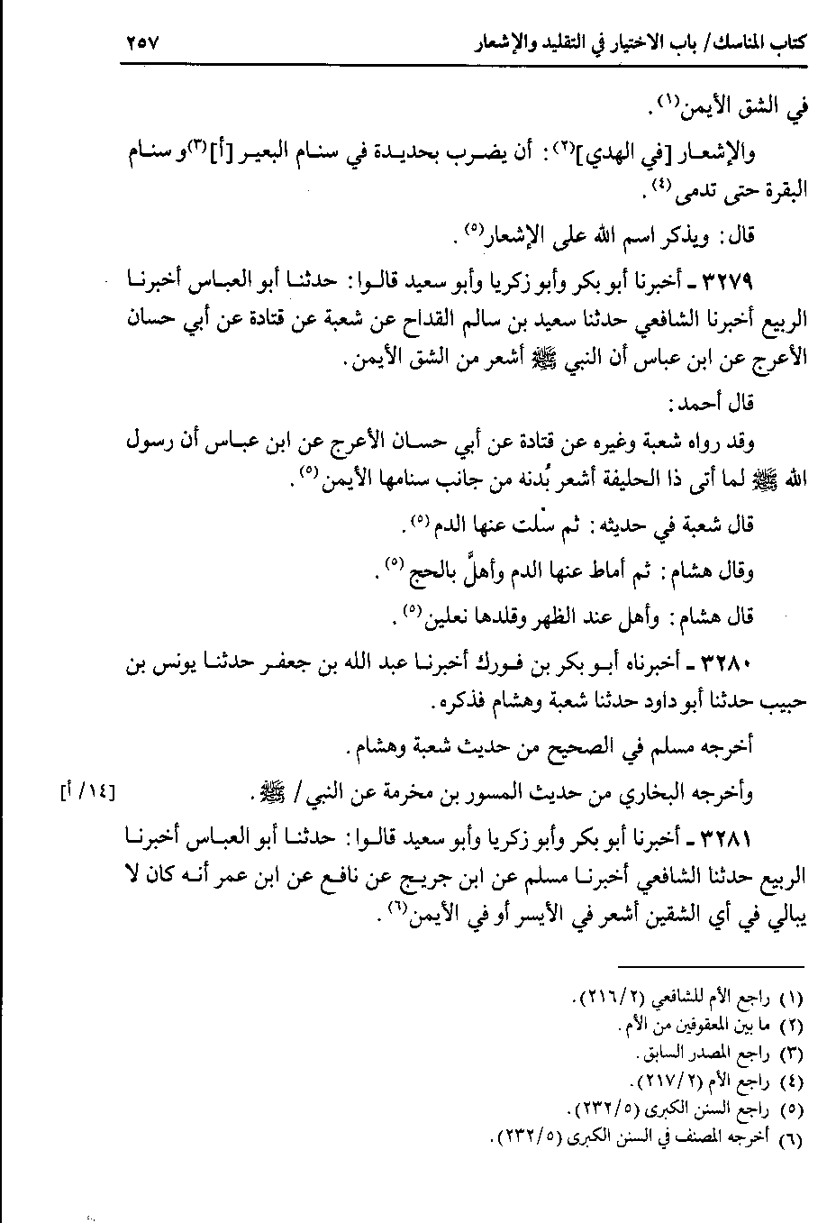 3281 - أخبرنا أبو بكر وأبو زكريا وأبو سعيد قالوا : حدثنا أبو العباس أخبرنا الربيع حدثنا الشافعي أخبرنا مسلم عن ابن جريج عن نافع عن ابن عمر أنه كان لا يبالي في أي الشقين أشعر في الأيسر أو في الأيمن.