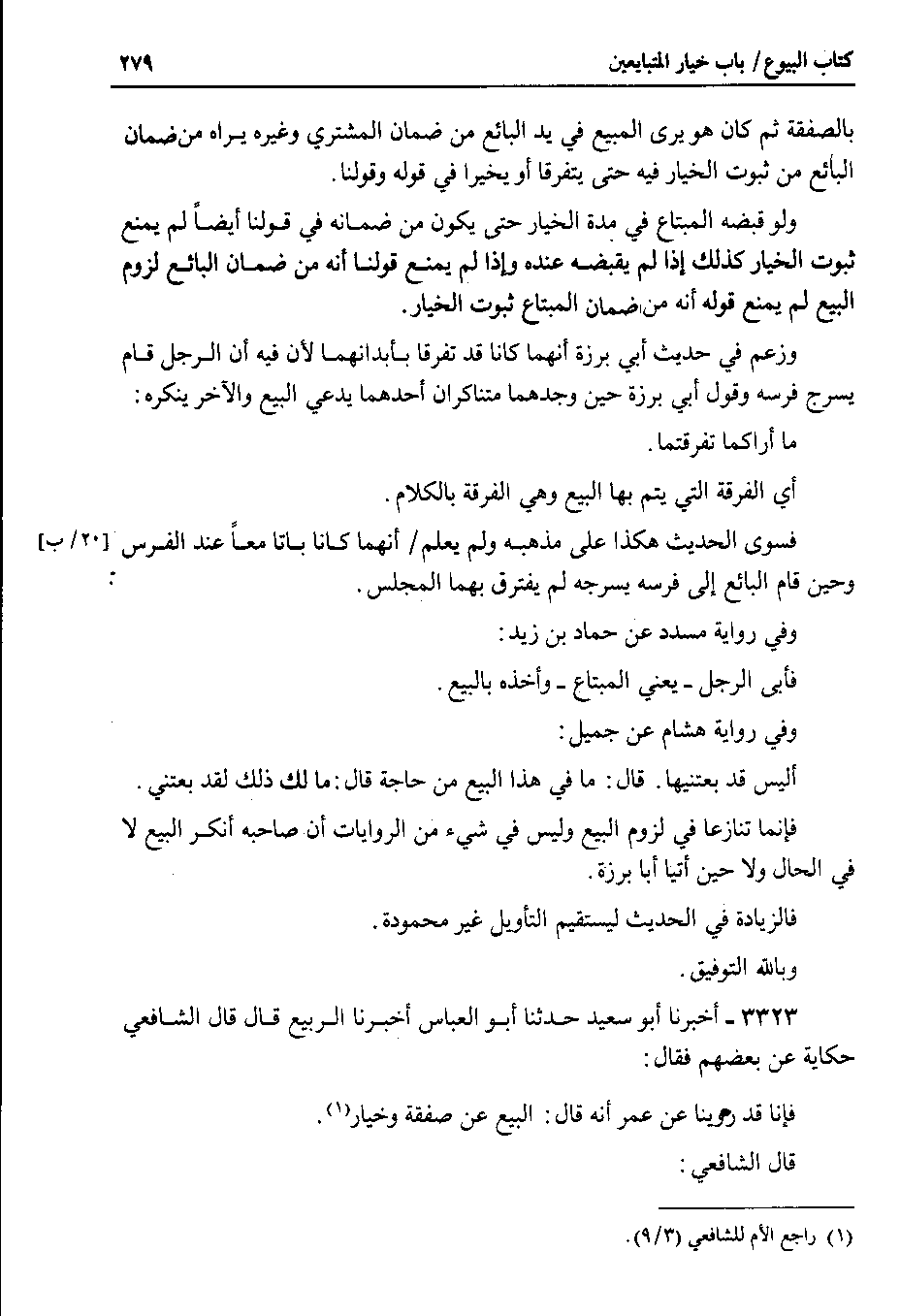 3323 - أخبرنا أبو سعيد حدثنا أبو العباس أخبرنا الربيع قال قال الشافعي حكاية عن بعضهم فقال فإنا قد روينا عن عمر أنه قال : البيع عن صفقة وخيار.