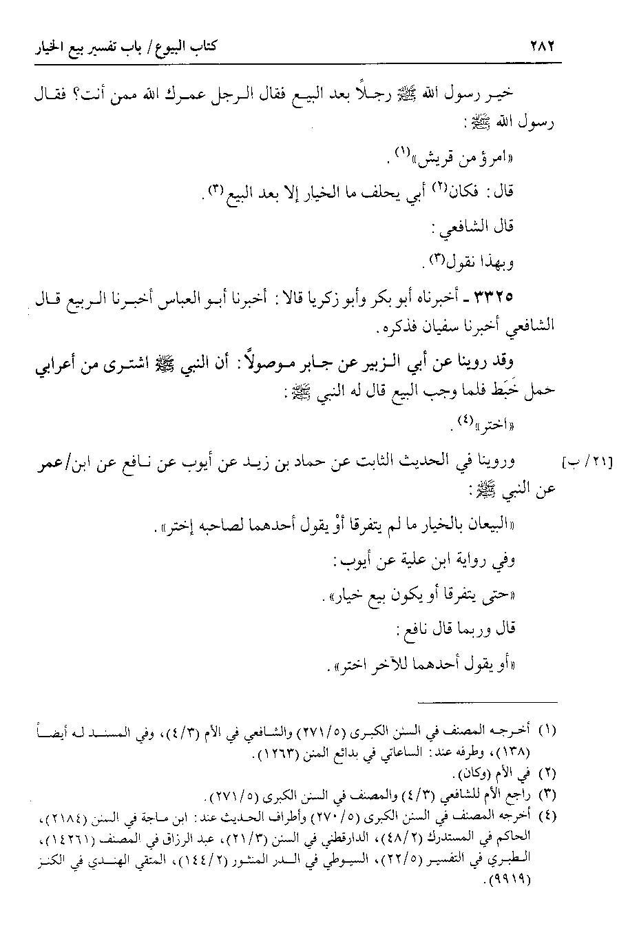 خير رسول الله صلى الله عليه وسلم رجلاً بعد البيع فقال الرجل عمرك الله ممن أنت ؟ فقال رسول الله صلى الله عليه وسلم امرؤ من قريش.