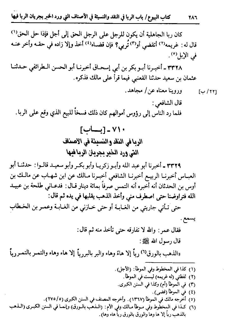 ( 710 - باب الربا في النقد والنسيئة في الأصناف التي ورد الخبر بجريان الربا فيها