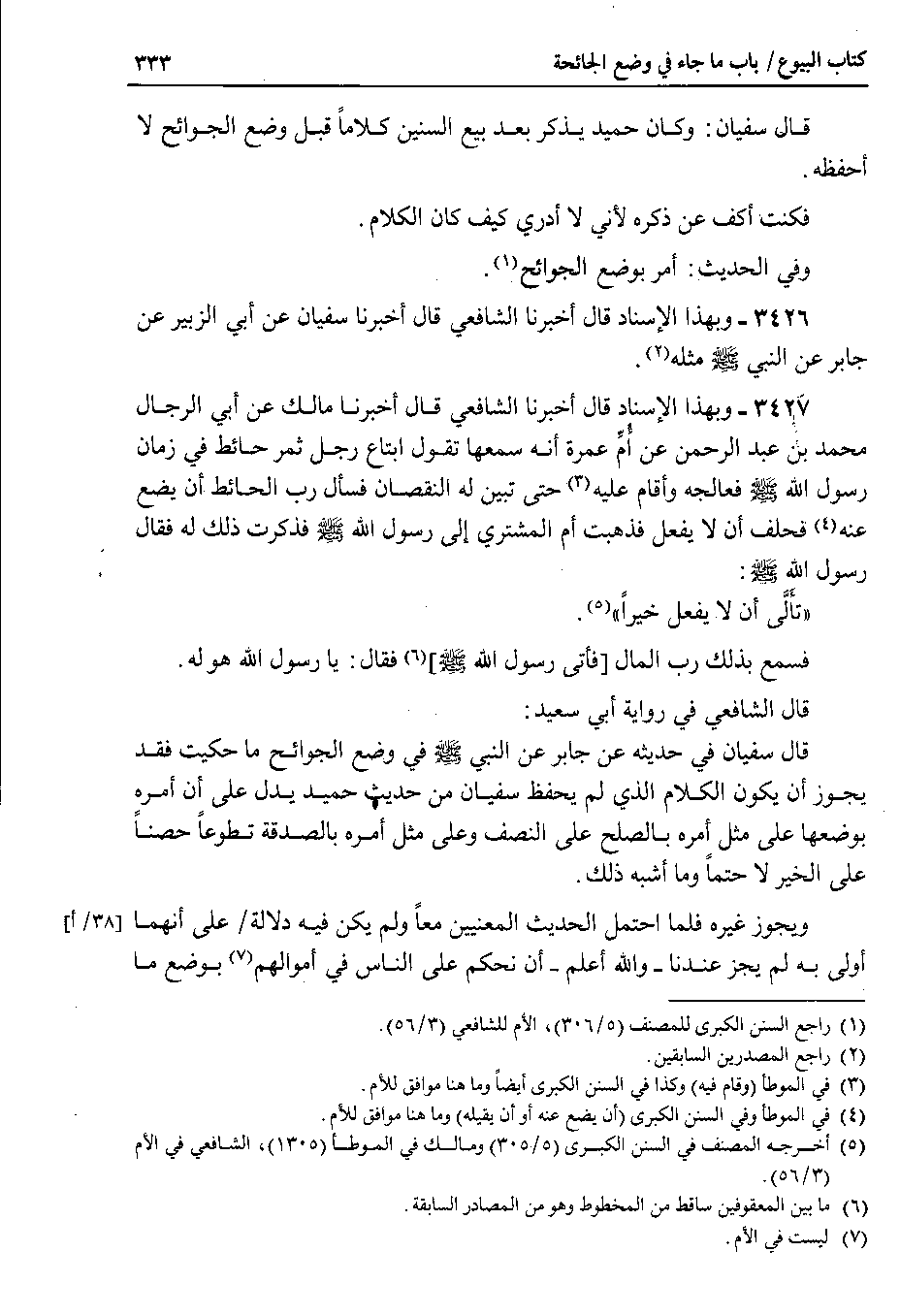 قال الشافعي في رواية أبي سعيد قال سفيان في حديثه عن جابر عن النبي صلى الله عليه وسلم في وضع الجوائح ما حكيت فقد يجوز أن يكون الكلام الذي لم يحفظ سفيان من حديث حميد يدل على أن أمره بوضعها على مثل أمره بالصلح على النصف وعلى مثل أمره بالصدقة تطوعاً حصناً على الخير لا حتما وما أشبه ذلك.