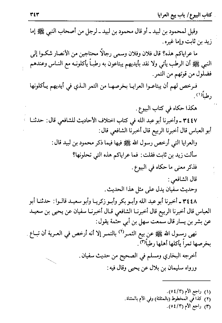 3447 - وأخبرنا أبو عبد الله في كتاب اختلاف الأحاديث للشافعي قال : حدثنا أبو العباس قال أخبرنا الربيع قال أخبرنا الشافعي قال والعرايا التي أرخص رسول الله صلى الله عليه وسلم فيها فيما ذكر محمود بن لبيد قال سألت زيد بن ثابت فقلت : فما عراياكم هذه التي تحلونها ؟ فذكر معنى ما حكاه في البيوع.