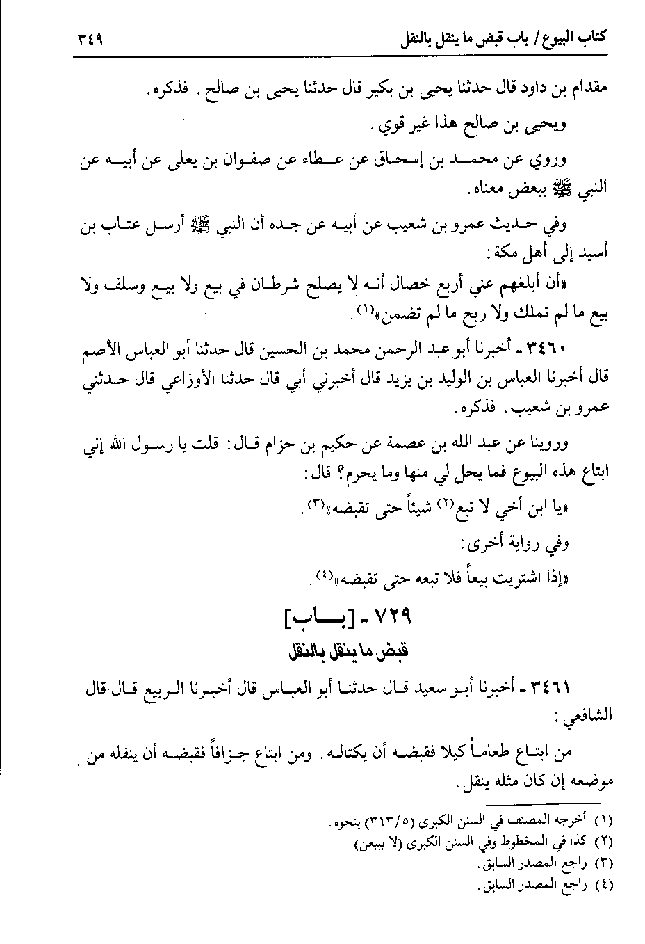 وروينا عن عبد الله بن عصمة عن حكيم بن حزام قال : قلت يا رسول الله إني أبتاع هذه البيوع فما يحل لي منها وما يحرم ؟ قال يا ابن أخي لا تبع شيئاً حتى تقبضه.