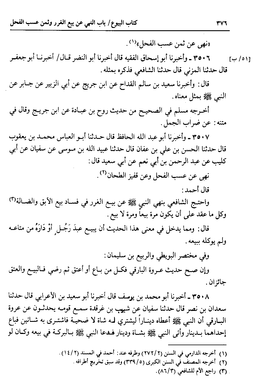 3506 - وأخبرنا أبو إسحاق الفقيه قال أخبرنا أبو النضر قال أخبرنا أبو جعفر قال حدثنا المزني قال حدثنا الشافعي فذكره بمثله.