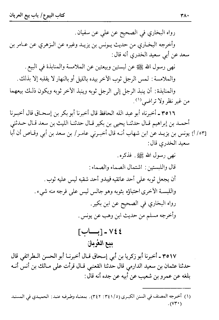 وأخرجه البخاري من حديث يونس بن يزيد وغيره عن الزهري عن عامر بن سعد عن أبي سعيد الخدري أنه قال نهى رسول الله صلى الله عليه وسلم عن لبستين وبيعتين عن الملامسة والمنابذة في البيع.