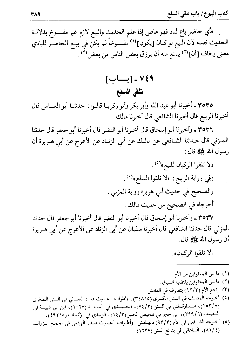 3537 - وأخبرنا أبو إسحاق قال أخبرنا أبو النضر قال أخبرنا أبو جعفر قال حدثنا المزني قال حدثنا الشافعي قال أخبرنا سفيان عن أبي الزناد عن الأعرج عن أبي هريرة أن رسول الله صلى الله عليه وسلم قال لا تلقوا الركبان.