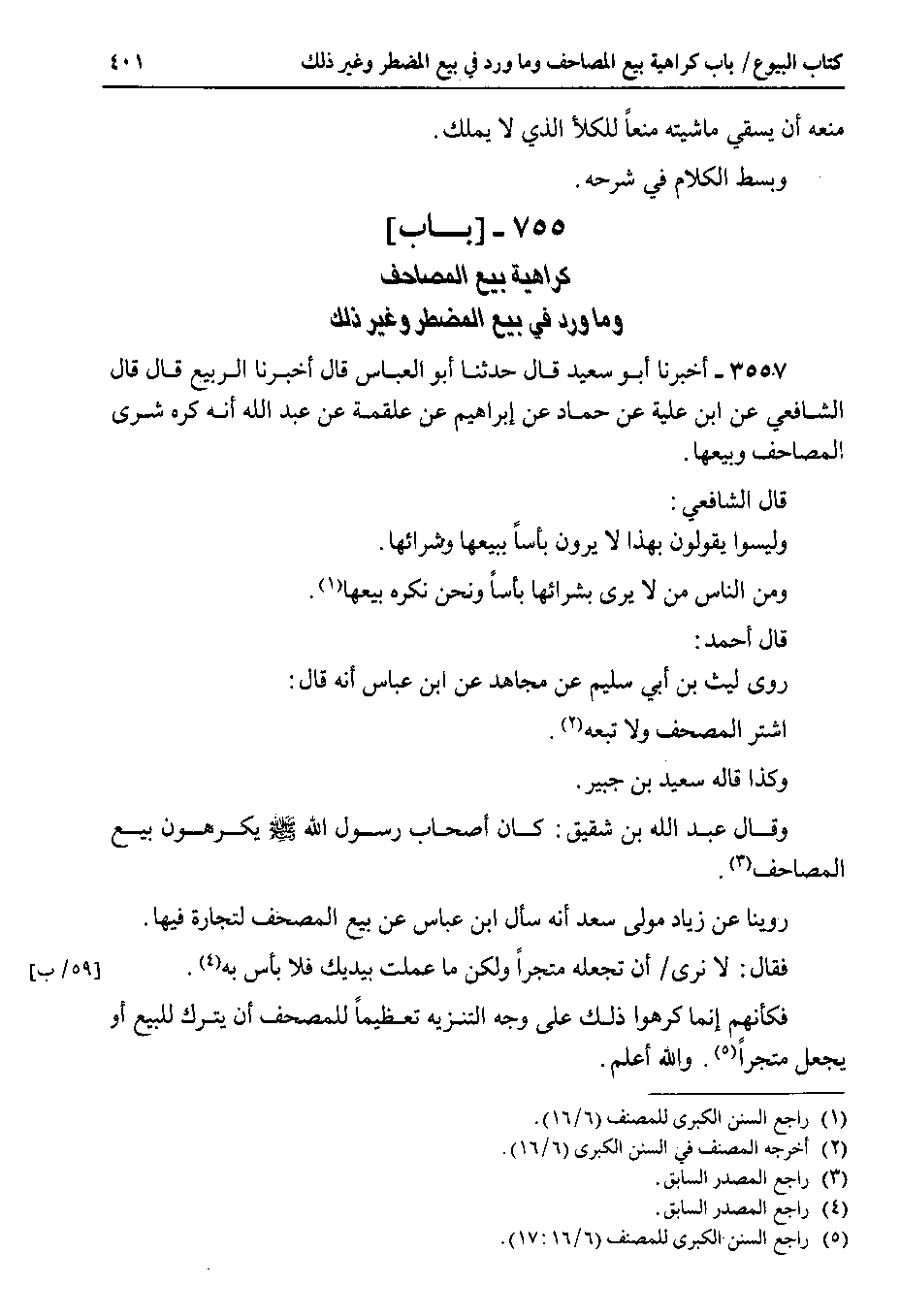 ( 755 - باب كراهية بيع المصاحف وما ورد في بيع المضطر وغير ذلك