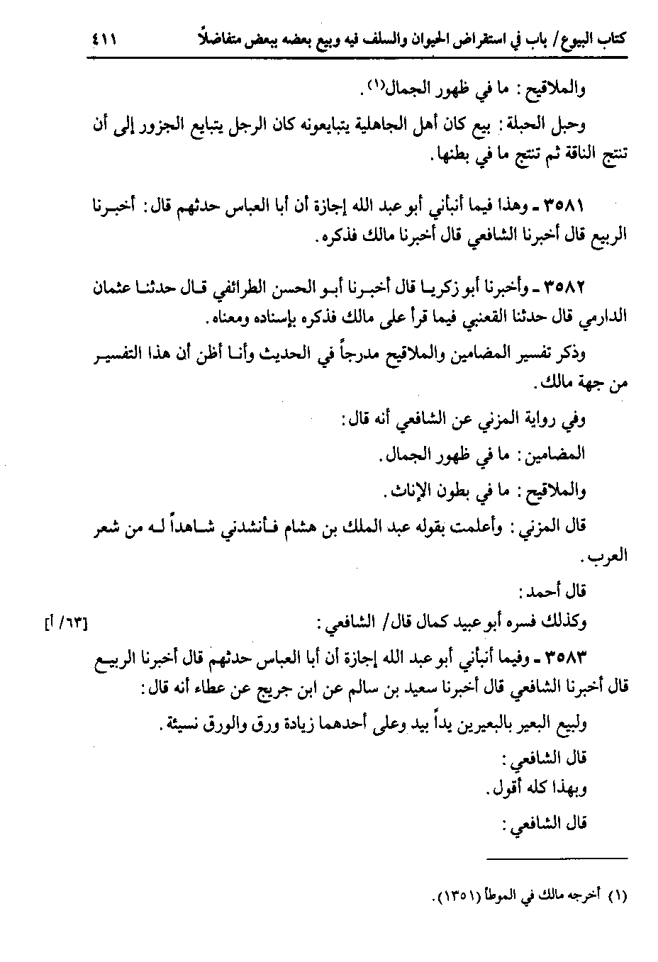 3581 - وهذا فيما أنبأني أبو عبد الله إجازة أن أبا العباس حدثهم قال : أخبرنا الربيع قال أخبرنا الشافعي قال أخبرنا مالك فذكره.