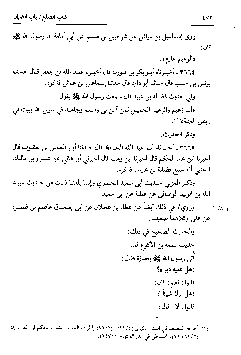 روى إسماعيل بن عياش عن شرحبيل بن مسلم عن أبي أمامة أن رسول الله صلى الله عليه وسلم قال الزعيم غارم.