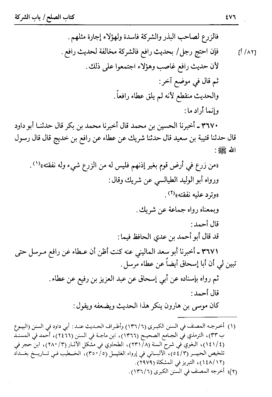 فإن احتج رجل بحديث رافع فالشركة مخالفة لحديث رافع.