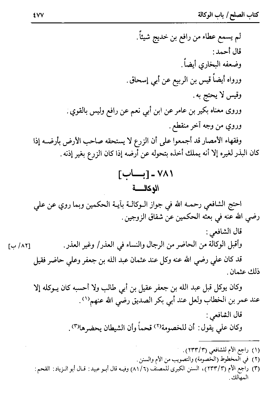 احتج الشافعي رحمه الله في جواز الوكالة بآية الحكمين وبما روي عن علي رضي الله عنه في بعثه الحكمين عن شقاق الزوجين.