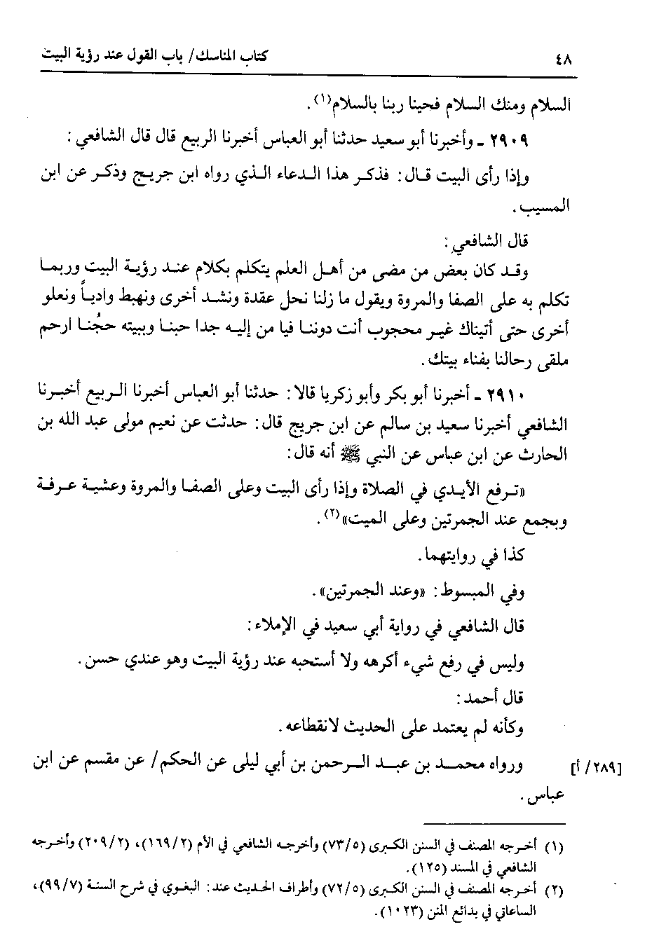 2909 - وأخبرنا أبو سعيد حدثنا أبو العباس أخبرنا الربيع قال قال الشافعي وإذا رأى البيت قال : فذكر هذا الدعاء الذي رواه ابن جريج وذكر عن ابن المسيب.