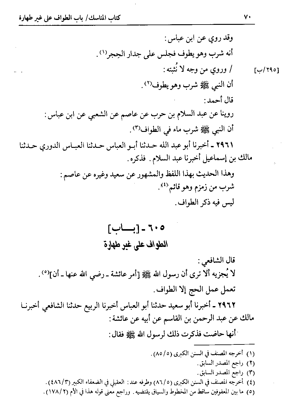 قال أحمد روينا عن عبد السلام بن حرب عن عاصم عن الشعبي عن ابن عباس أن النبي صلى الله عليه وسلم شرب ماء في الطواف.