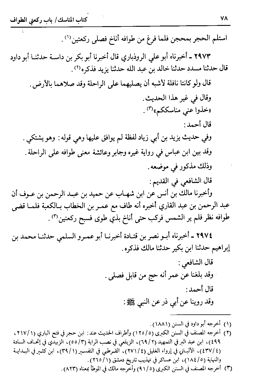 قال الشافعي في القديم وأخبرنا مالك بن أنس عن ابن شهاب عن حميد بن عبد الرحمن بن عوف أن عبد الرحمن بن عبد القاري أخبره أنه طاف مع عمر بن الخطاب بالكعبة فلما قضى طوافه نظر فلم ير الشمس فركب حتى أناخ بذي طوى فسبح ركعتين.