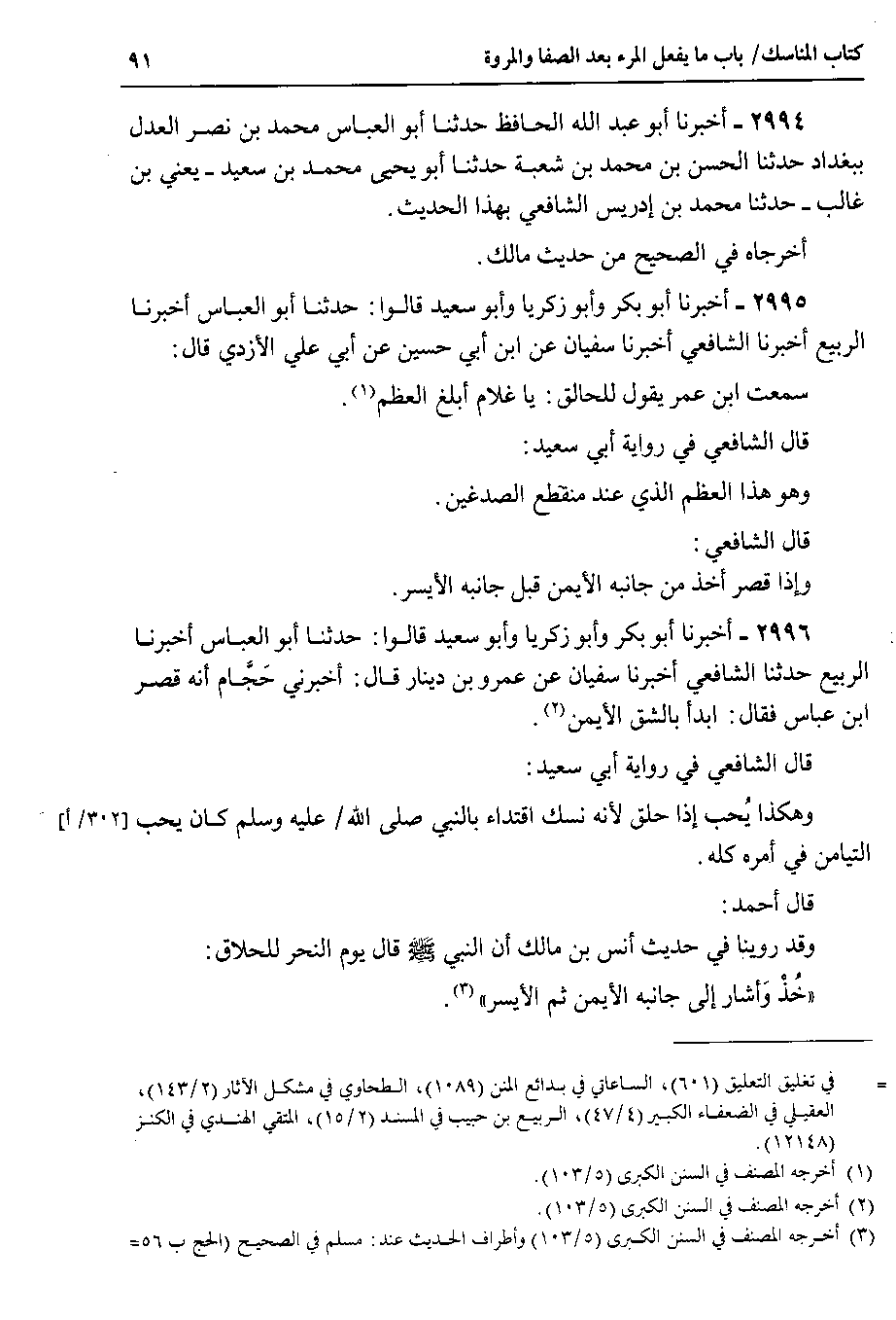 2995 - أخبرنا أبو بكر وأبو زكريا وأبو سعيد قالوا : حدثنا أبو العباس أخبرنا الربيع أخبرنا الشافعي أخبرنا سفيان عن ابن أبي حسين عن أبي علي الأزدي قال سمعت ابن عمر يقول للحالق : يا غلام أبلغ العظم.