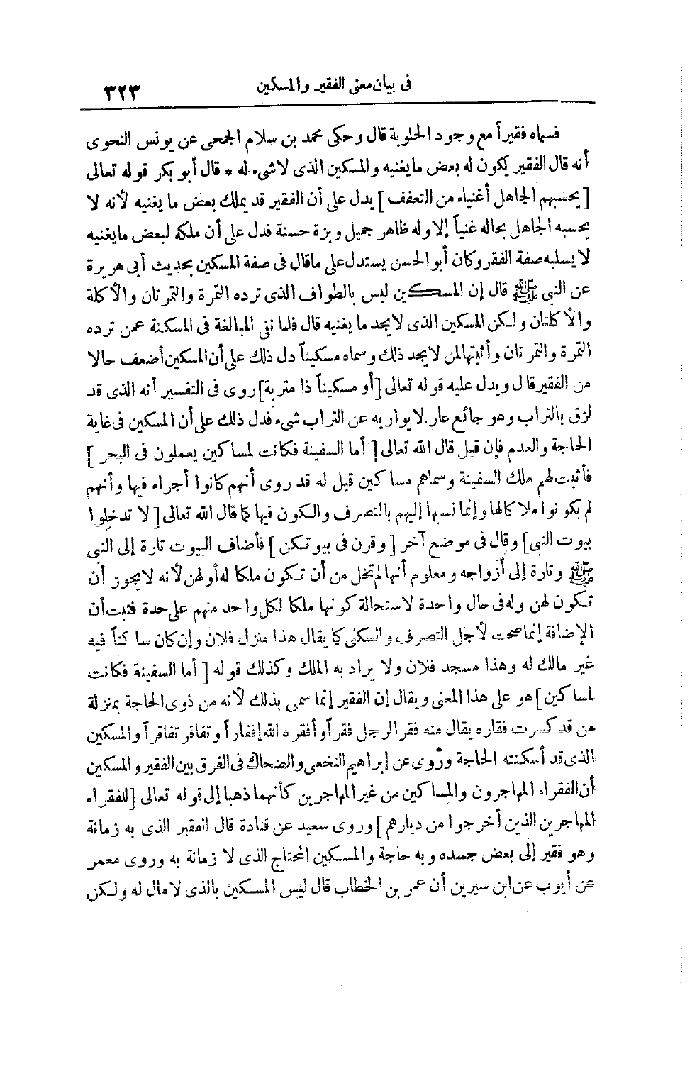 فَسَمَّاهُ فَقِيرًا مَعَ وُجُودِ الْحَلُوبَةِ قَالَ وَحَكَى مُحَمَّدُ بْنُ سَلَّامٍ الْجُمَحِيُّ عَنْ يُونُسَ النَّحْوِيِّ أَنَّهُ قَالَ الْفَقِيرُ يَكُونُ لَهُ بَعْضُ مَا يُغْنِيهِ وَالْمِسْكِينُ الَّذِي لَا شَيْءَ لَهُ قَالَ أَبُو بَكْرٍ قَوْله تَعَالَى يَحْسَبُهُمُ الْجَاهِلُ أَغْنِيَاءَ مِنَ التَّعَفُّفِ يَدُلُّ عَلَى أَنَّ الْفَقِيرَ قَدْ يَمْلِكُ بَعْضَ ما يغنيه لأنه لا يحسبه الْجَاهِلُ بِحَالِهِ غَنِيًّا إلَّا وَلَهُ ظَاهِرُ جَمِيلٍ وَبَزَّةٌ حَسَنَةٌ فَدَلَّ عَلَى أَنَّ مِلْكَهُ لِبَعْضِ مَا يُغْنِيهِ لَا يَسْلُبُهُ صِفَةَ الْفَقْرِ وَكَانَ أَبُو الْحَسَنِ يَسْتَدِلُّ عَلَى مَا قَالَ فِي صِفَةِ الْمِسْكِينِ
