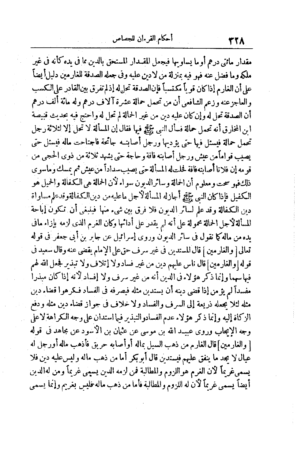 أَنَّ فُلَانًا أَصَابَتْهُ فَاقَةٌ فَحَلَّتْ لَهُ الْمَسْأَلَةُ حَتَّى يُصِيبَ سَدَادًا مِنْ عَيْشٍ ثُمَّ يُمْسِكُ وَمَا سِوَى ذَلِكَ فَهُوَ سُحْتٌ وَمَعْلُومٌ أَنَّ الْحَمَالَةَ وَسَائِرَ الدُّيُونِ سَوَاءٌ لِأَنَّ الْحَمَالَةَ هِيَ الْكَفَالَةُ وَالْحَمِيلُ هُوَ الْكَفِيلُ فَإِذَا كان النبي صلّى اللَّه عليه وآله وَسَلَّمَ أَجَازَ لَهُ الْمَسْأَلَةَ لِأَجْلِ مَا عَلَيْهِ مِنْ دَيْنِ الْكَفَالَةِ وَقَدْ عَلِمَ مُسَاوَاةَ دَيْنِ الكفالة وقد علم لِسَائِرِ الدُّيُونِ فَلَا فَرْقَ بَيْنَ شَيْءٍ مِنْهَا فَيَنْبَغِي أَنْ تَكُونَ إبَاحَةُ الْمَسْأَلَةِ لِأَجْلِ الْحَمَالَةِ مَحْمُولَةً عَلَى أَنَّهُ لَمْ يَقْدِرْ عَلَى أَدَائِهَا وَكَانَ الْغُرْمُ الَّذِي لَزِمَهُ بِإِزَاءِ مَا فِي يَدِهِ مِنْ مَالِهِ كَمَا نَقُولُ فِي سَائِرِ الدُّيُونِ وَرَوَى إسْرَائِيلُ عَنْ جَابِرِ بْنِ أَبِي جعفر في قوله تعالى والغارمين قَالَ الْمُسْتَدِينُ فِي غَيْرِ سَرَفٍ حَقٌّ عَلَى الإمام يَقْضِيَ عَنْهُ وَقَالَ سَعِيدٌ فِي قَوْلِهِ وَالْغَارِمِينَ قَالَ نَاسٌ عَلَيْهِمْ دَيْنٌ مِنْ غَيْرِ فَسَادٍ وَلَا إتْلَافٍ وَلَا تَبْذِيرٍ فَجَعَلَ اللَّه لَهُمْ فِيهَا سَهْمًا وَإِنَّمَا ذَكَرَ هَؤُلَاءِ فِي الدَّيْنِ أَنَّهُ مِنْ غَيْرِ سَرَفٍ وَلَا إفْسَادٍ لِأَنَّهُ إذَا كَانَ مُبَذِّرًا مُفْسِدًا لَمْ يُؤْمَنْ إذَا قَضَى دَيْنَهُ أَنْ يَسْتَدِينَ مِثْلَهُ فَيَصْرِفَهُ فِي الْفَسَادِ فَكَرِهُوا قَضَاءَ دَيْنِ مِثْلِهِ لِئَلَّا يَجْعَلَهُ ذَرِيعَةً إلَى السَّرَفِ وَالْفَسَادِ وَلَا خِلَافَ فِي جَوَازِ قَضَاءِ دَيْنِ مِثْلِهِ وَدَفْعِ الزَّكَاةِ إلَيْهِ وَإِنَّمَا ذَكَرَ هَؤُلَاءِ عَدَمَ الْفَسَادِ وَالتَّبْذِيرِ فِيمَا استدان على وجه الكراهة لا على وجه الْإِيجَابِ وَرَوَى عُبَيْدُ اللَّه بْنُ مُوسَى عَنْ عُثْمَانَ بْنِ الْأَسْوَدِ عَنْ مُجَاهِدٍ فِي قَوْلِهِ والغارمين قَالَ الْغَارِمُ مَنْ ذَهَبَ السَّيْلُ بِمَالِهِ أَوْ أَصَابَهُ حَرِيقٌ فَأَذْهَبَ مَالَهُ أَوْ رَجُلٌ لَهُ عِيَالٌ لَا يَجِدُ مَا يُنْفِقُ عَلَيْهِمْ فَيَسْتَدِينُ قَالَ أَبُو بَكْرٍ أَمَّا مَنْ ذَهَبَ مَالُهُ وَلَيْسَ عَلَيْهِ دَيْنٌ فَلَا يُسَمَّى غَرِيمًا لِأَنَّ الْغُرْمَ هُوَ اللُّزُومُ وَالْمُطَالَبَةُ فَمَنْ لَزِمَهُ الدَّيْنُ يُسَمَّى غَرِيمًا وَمَنْ لَهُ الدَّيْنُ أَيْضًا يُسَمَّى غَرِيمًا لِأَنَّ لَهُ اللُّزُومَ وَالْمُطَالَبَةَ فَأَمَّا مَنْ ذَهَبَ مَالُهُ فَلَيْسَ بِغَرِيمٍ وَإِنَّمَا يُسَمَّى