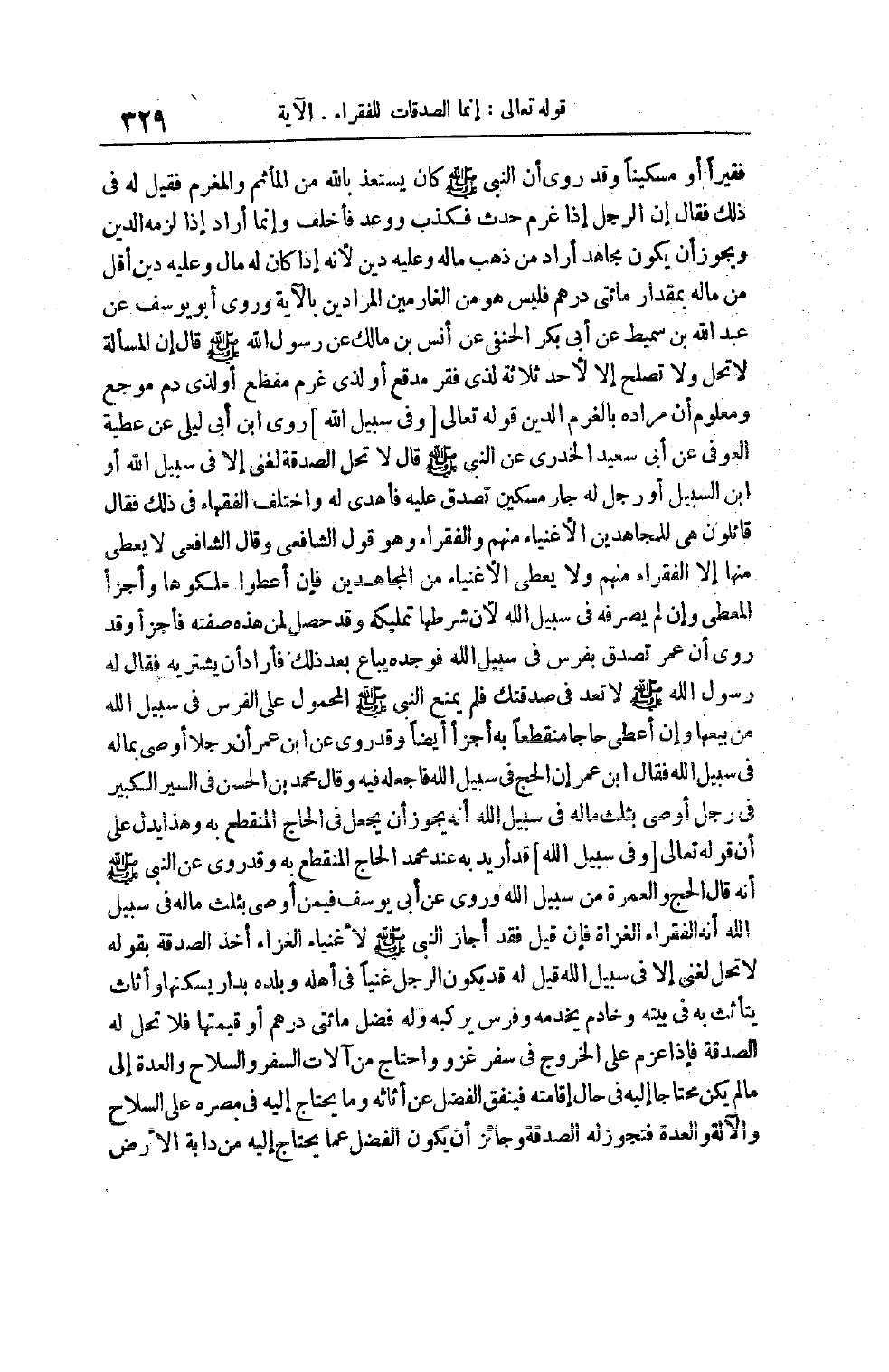 فَلَمْ يَمْنَعْ النبي صلّى اللَّه عليه وآله وَسَلَّمَ الْمَحْمُولَ عَلَى الْفَرَسِ فِي سَبِيلِ اللَّهِ مِنْ بَيْعِهَا وَإِنْ أَعْطَى حَاجًّا مُنْقَطِعًا بِهِ أَجْزَأَ أَيْضًا وَقَدْ رُوِيَ عَنْ ابْنِ عُمَرَ أَنَّ رَجُلًا أَوْصَى بِمَالِهِ فِي سَبِيلِ اللَّهِ فَقَالَ ابْنُ عُمَرَ إنَّ الْحَجَّ فِي سَبِيلِ اللَّهِ فَاجْعَلْهُ فِيهِ وَقَالَ مُحَمَّدُ بْنُ الْحَسَنِ فِي السِّيَرِ الْكَبِيرِ فِي رَجُلٍ أَوْصَى بِثُلُثِ مَالِهِ فِي سَبِيلِ اللَّهِ إنَّهُ يَجُوزُ أَنْ يَجْعَلَ فِي الْحَاجِّ الْمُنْقَطِعِ بِهِ وَهَذَا يَدُلُّ عَلَى أَنَّ قَوْله تَعَالَى وَفِي سَبِيلِ اللَّهِ قَدْ أُرِيدَ بِهِ عِنْدَ مُحَمَّدٍ الْحَاجُّ الْمُنْقَطِعُ بِهِ