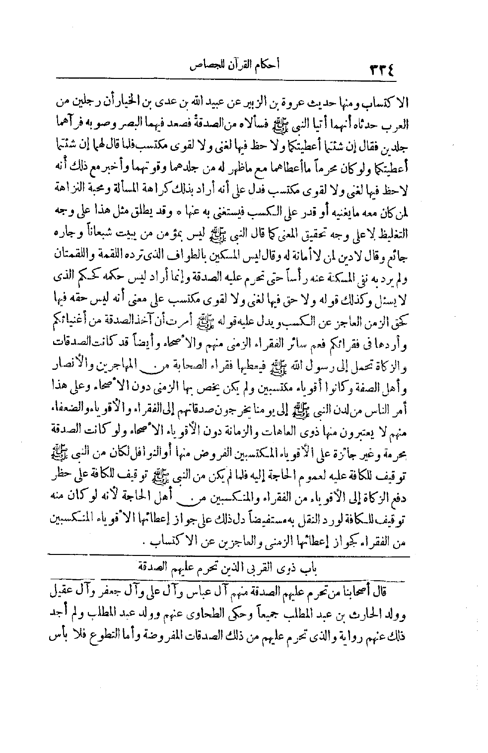 فَعَمَّ سَائِرَ الْفُقَرَاءِ الزَّمْنَى منهم والأصحاء وأيضا قد كانت الصدقات والزكاة تحل إلى رسول اللَّه صلّى اللَّه عليه وآله وَسَلَّمَ فَيُعْطِيهَا فُقَرَاءَ الصَّحَابَةِ مِنْ الْمُهَاجِرِينَ وَالْأَنْصَارِ وَأَهْلِ الصُّفَّةِ وَكَانُوا أَقْوِيَاءَ مُكْتَسِبِينَ وَلَمْ يَكُنْ يَخُصُّ بِهَا الزَّمْنَى دُونَ الْأَصِحَّاءِ وَعَلَى هَذَا أَمْرُ النَّاسِ مِنْ لَدُنْ النَّبِيِّ صَلَّى اللَّه عليه وآله وَسَلَّمَ إلَى يَوْمِنَا يُخْرِجُونَ صَدَقَاتِهِمْ إلَى الْفُقَرَاءِ والأقوياء وَالضُّعَفَاءِ مِنْهُمْ لَا يَعْتَبِرُونَ مِنْهَا ذَوِي الْعَاهَاتِ وَالزَّمَانَةِ دُونَ الْأَقْوِيَاءِ الْأَصِحَّاءِ وَلَوْ كَانَتْ الصَّدَقَةُ مُحَرَّمَةً وَغَيْرَ جَائِزَةٍ عَلَى الْأَقْوِيَاءِ الْمُكْتَسِبِينَ الْفُرُوضَ مِنْهَا أَوْ النَّوَافِلَ لَكَانَ مِنْ النَّبِيِّ صَلَّى اللَّه عليه وآله وَسَلَّمَ تَوْقِيفٌ لِلْكَافَّةِ عَلَيْهِ لِعُمُومِ الْحَاجَةِ إلَيْهِ فَلَمَّا لَمْ يَكُنْ مِنْ النَّبِيِّ صَلَّى اللَّه عَلَيْهِ وآله وسلم توقيف للكافة على حظر دفع الزكاة إلى الأقوياء من الفقراء والمكتسبين مِنْ أَهْلِ الْحَاجَةِ لِأَنَّهُ لَوْ كَانَ مِنْهُ تَوْقِيفٌ لِلْكَافَّةِ لَوَرَدَ النَّقْلُ بِهِ مُسْتَفِيضًا دَلَّ ذَلِكَ عَلَى جَوَازِ إعْطَائِهَا الْأَقْوِيَاءَ الْمُتَكَسِّبِينَ مِنْ الْفُقَرَاءِ كَجَوَازِ إعْطَائِهَا الزَّمْنَى وَالْعَاجِزِينَ عَنْ الِاكْتِسَابِ.
