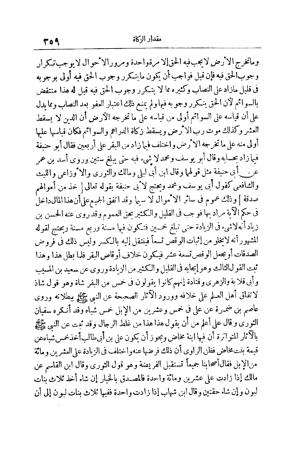 وَمَا تُخْرِجُ الْأَرْضُ لَا يَجِبُ فِيهِ الْحَقُّ إلَّا مَرَّةً وَاحِدَةً وَمُرُورُ الْأَحْوَالِ لَا يُوجِبُ تَكْرَارَ وُجُوبِ الْحَقِّ فِيهِ فَإِنْ قِيلَ فَوَاجِبٌ أَنْ يَكُونَ مَا يَتَكَرَّرُ وُجُوبُ الْحَقِّ فِيهِ أَوْلَى بِوُجُوبِهِ فِي قَلِيلِ مَا زَادَ عَلَى النِّصَابِ وَكَثِيرِهِ مِمَّا لَا يَتَكَرَّرُ وُجُوبُ الْحَقِّ فِيهِ قِيلَ لَهُ هَذَا مُنْتَقَضٌ بِالسَّوَائِمِ لِأَنَّ الْحَقَّ يَتَكَرَّرُ وُجُوبُهُ فِيهَا وَلَمْ يَمْنَعْ ذَلِكَ اعْتِبَارُ الْعَفْوِ بَعْدَ النِّصَابِ وَمِمَّا يَدُلُّ عَلَى أَنَّ قِيَاسَهُ عَلَى السَّوَائِمِ أَوْلَى مِنْ قِيَاسِهِ عَلَى مَا تُخْرِجُهُ الْأَرْضُ أَنَّ الدَّيْنَ لَا يُسْقِطُ الْعُشْرَ وَكَذَلِكَ مَوْتُ رَبِّ الْأَرْضِ وَيُسْقِطُ زَكَاةَ الدَّرَاهِمِ وَالسَّوَائِمِ فَكَانَ قِيَاسُهَا عَلَيْهَا أَوْلَى مِنْهُ عَلَى مَا تُخْرِجُهُ الْأَرْضُ وَاخْتُلِفَ فِيمَا زَادَ مِنْ الْبَقَرِ عَلَى أَرْبَعِينَ فَقَالَ أَبُو حَنِيفَةَ فِيمَا زَادَ بِحِسَابِهِ وَقَالَ أَبُو يُوسُفَ وَمُحَمَّدٌ لَا شَيْءَ فِيهِ حَتَّى يَبْلُغَ سِتِّينَ وَرَوَى أَسَدُ بْنُ عُمَرَ عَنْ أَبِي حَنِيفَةَ مِثْلَ قَوْلِهِمَا وَقَالَ ابْنُ أَبِي لَيْلَى وَمَالِكٌ وَالثَّوْرِيُّ وَالْأَوْزَاعِيُّ وَاللَّيْثُ وَالشَّافِعِيُّ كَقَوْلِ أَبِي يُوسُفَ وَمُحَمَّدٍ وَيُحْتَجُّ لِأَبِي حَنِيفَةَ بِقَوْلِهِ تَعَالَى خُذْ من أموالهم صدقة وَذَلِكَ عُمُومٌ فِي سَائِرِ الْأَمْوَالِ لَا سِيَّمَا وَقَدْ اتَّفَقَ الْجَمِيعُ عَلَى أَنَّ هَذَا الْمَالَ دَاخِلٌ فِي حُكْمِ الْآيَةِ مُرَادٌ بِهَا فَوَجَبَ فِي الْقَلِيلِ وَالْكَثِيرِ بِحَقِّ الْعُمُومِ وَقَدْ رَوَى عَنْهُ الْحَسَنُ بْنُ زِيَادٍ أَنَّهُ لَا شَيْءَ فِي الزِّيَادَةِ حَتَّى تَبْلُغَ خَمْسِينَ فَتَكُونَ فِيهَا مُسِنَّةً وَرُبْعَ مُسِنَّةٍ وَيَحْتَجُّ لِقَوْلِهِ الْمَشْهُورِ أَنَّهُ لَا يَخْلُو مِنْ إثْبَاتِ الْوَقَصِ تِسْعًا فَيَنْتَقِلُ إلَيْهِ بِالْكَسْرِ وَلَيْسَ ذَلِكَ فِي فُرُوضِ الصَّدَقَاتِ أو يجعل الْوَقَصِ تِسْعَةَ عَشَرَ فَيَكُونُ خِلَافُ أَوْقَاصِ الْبَقَرِ فَلَمَّا بَطَلَ هَذَا وَهَذَا ثَبَتَ الْقَوْلُ الثَّالِثُ وَهُوَ إيجَابُهُ فِي الْقَلِيلِ وَالْكَثِيرِ مِنْ الزِّيَادَةِ وَرُوِيَ عَنْ سَعِيدِ بْنِ الْمُسَيِّبِ وَأَبِي قِلَابَةَ وَالزُّهْرِيِّ وَقَتَادَةَ أَنَّهُمْ كَانُوا يَقُولُونَ فِي خَمْسٍ مِنْ الْبَقَرِ شَاةٌ وَهُوَ قَوْلٌ شَاذٌّ لِاتِّفَاقِ أَهْلِ الْعِلْمِ عَلَى خِلَافِهِ وَوُرُودِ الْآثَارِ الصَّحِيحَةِ عَنْ النَّبِيِّ صَلَّى اللَّهُ عَلَيْهِ وَسَلَّمَ بِبُطْلَانِهِ