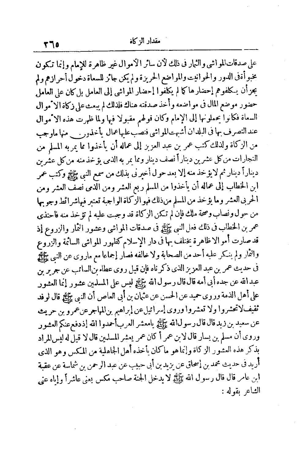 وَرُوِيَ أَنَّ مُسْلِمَ بْنَ يَسَارٍ قَالَ لِابْنِ عُمَرَ أَكَانَ عُمَرُ يُعَشِّرُ الْمُسْلِمِينَ قَالَ لَا قِيلَ لَهُ لَيْسَ الْمُرَادُ بِذِكْرِ هَذِهِ الْعُشُورِ الزَّكَاةَ وَإِنَّمَا هُوَ مَا كَانَ يَأْخُذُهُ أَهْلُ الْجَاهِلِيَّةِ مِنْ الْمَكْسِ وَهُوَ الَّذِي أُرِيدَ